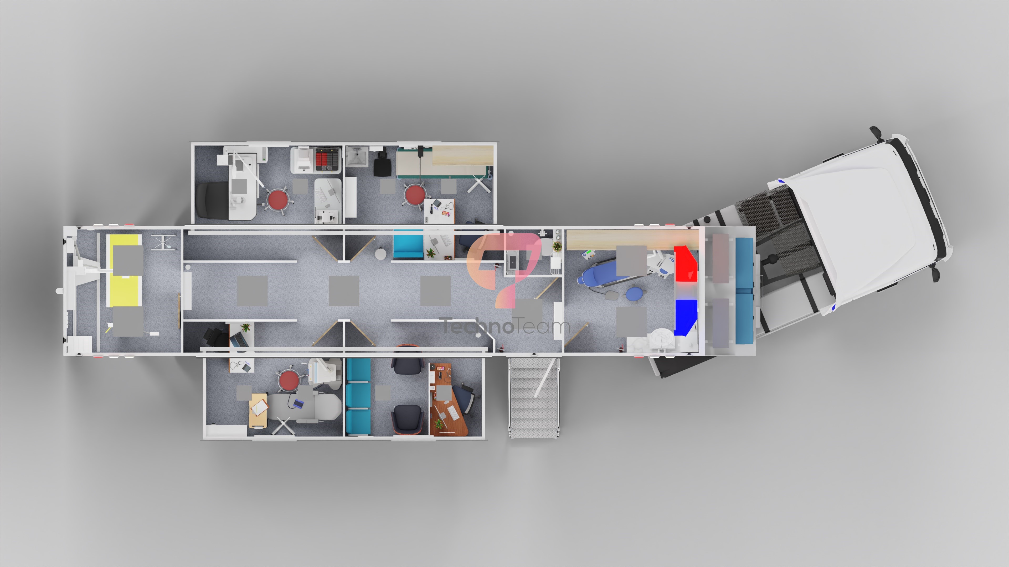 Techno Team designed and created specialized and medical areas like Mobile Multi Clinic, in order to answer needs of multidisciplinary approaches that can go from the simple Healthcare Center to the Operating Theatre able to answer the strictest clean-room environment rules, but also Screening and/ Dental Care Units, Ophthalmology, ENT, HIV, Cardiology, Gynecology, Medical Imaging...