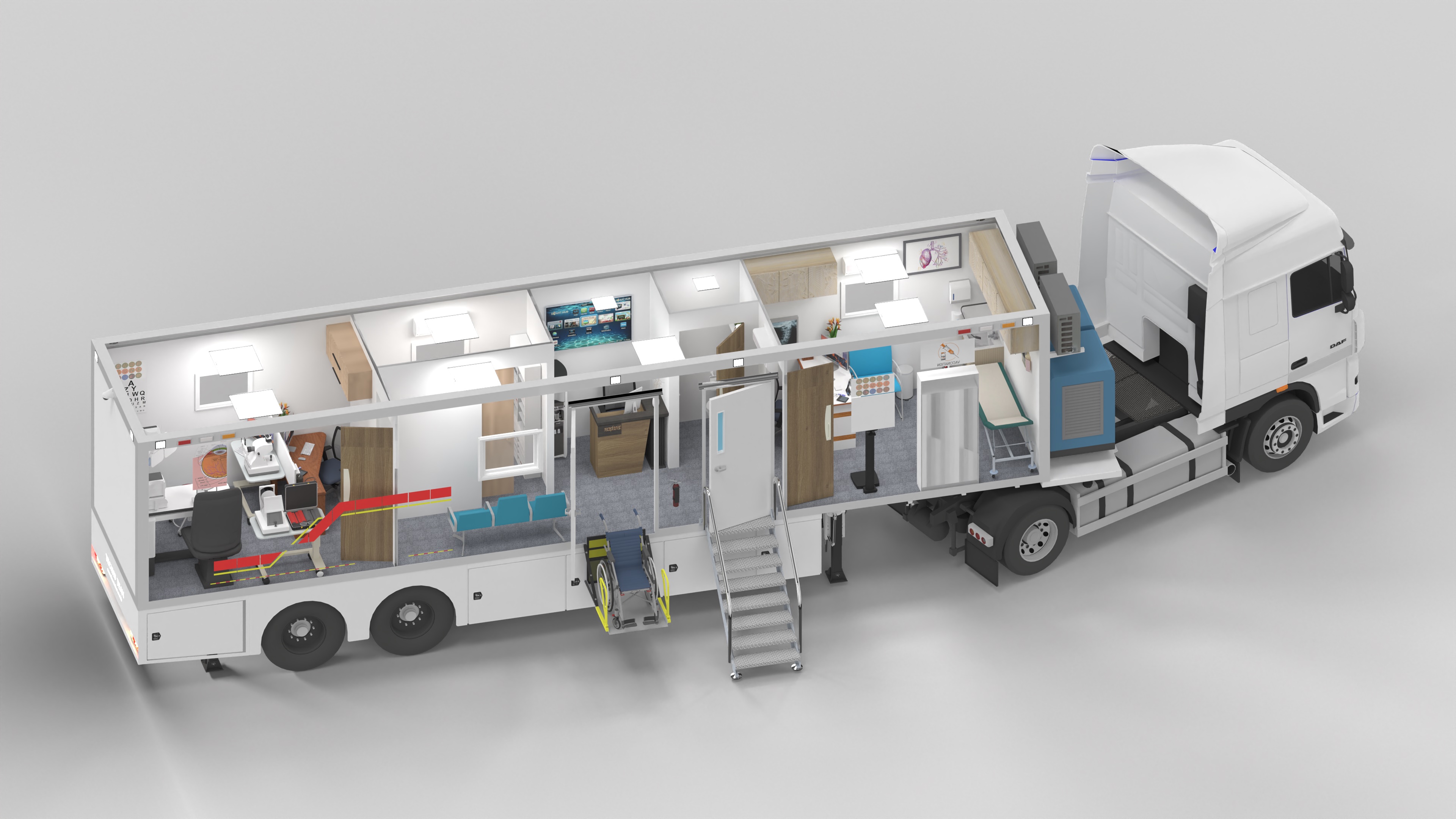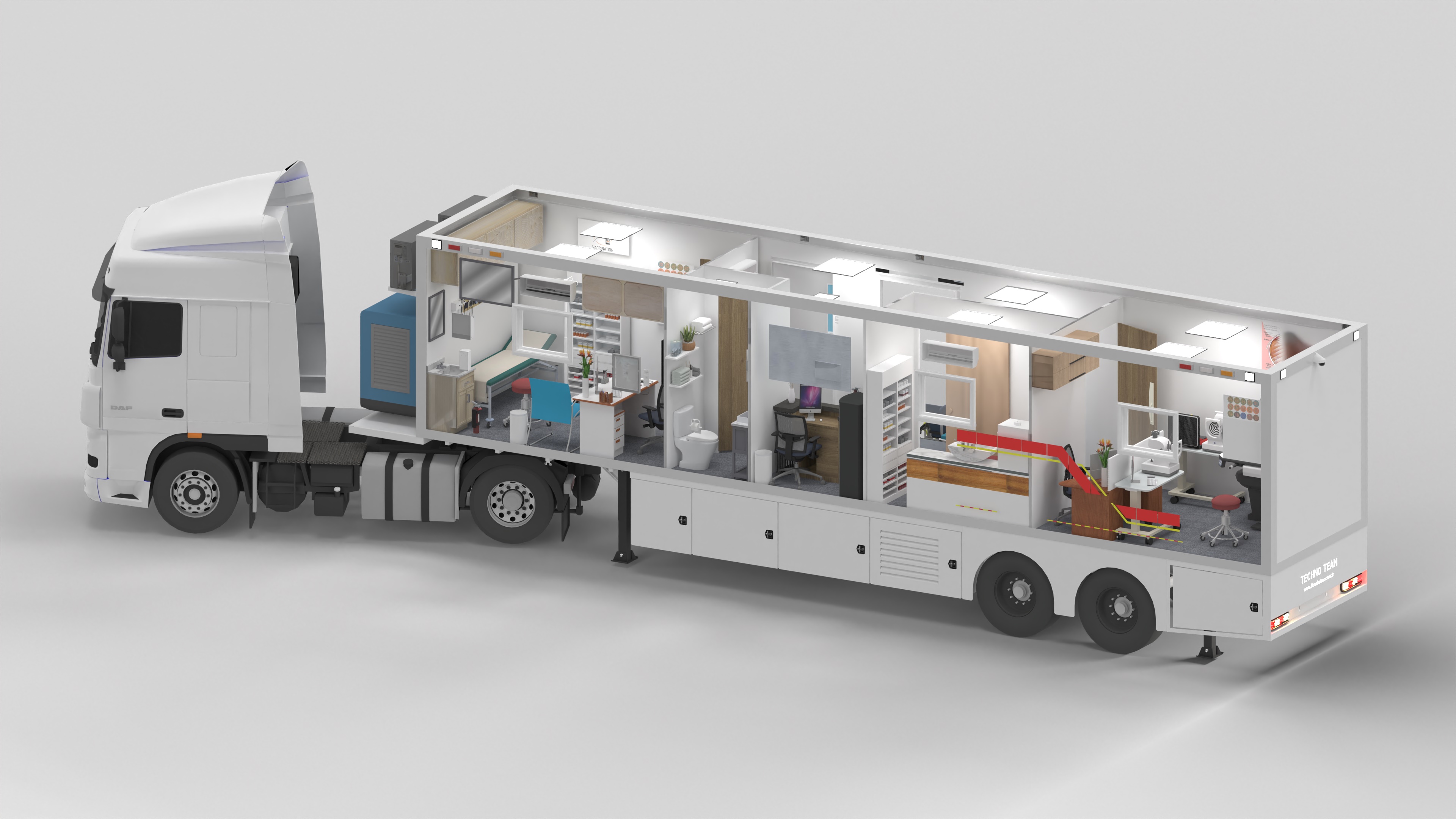 Techno Team designed comfortable equipped Trailer Based Mobile Opthalmology Clinic (Mobile Eye Clinic) containers which can operate independently