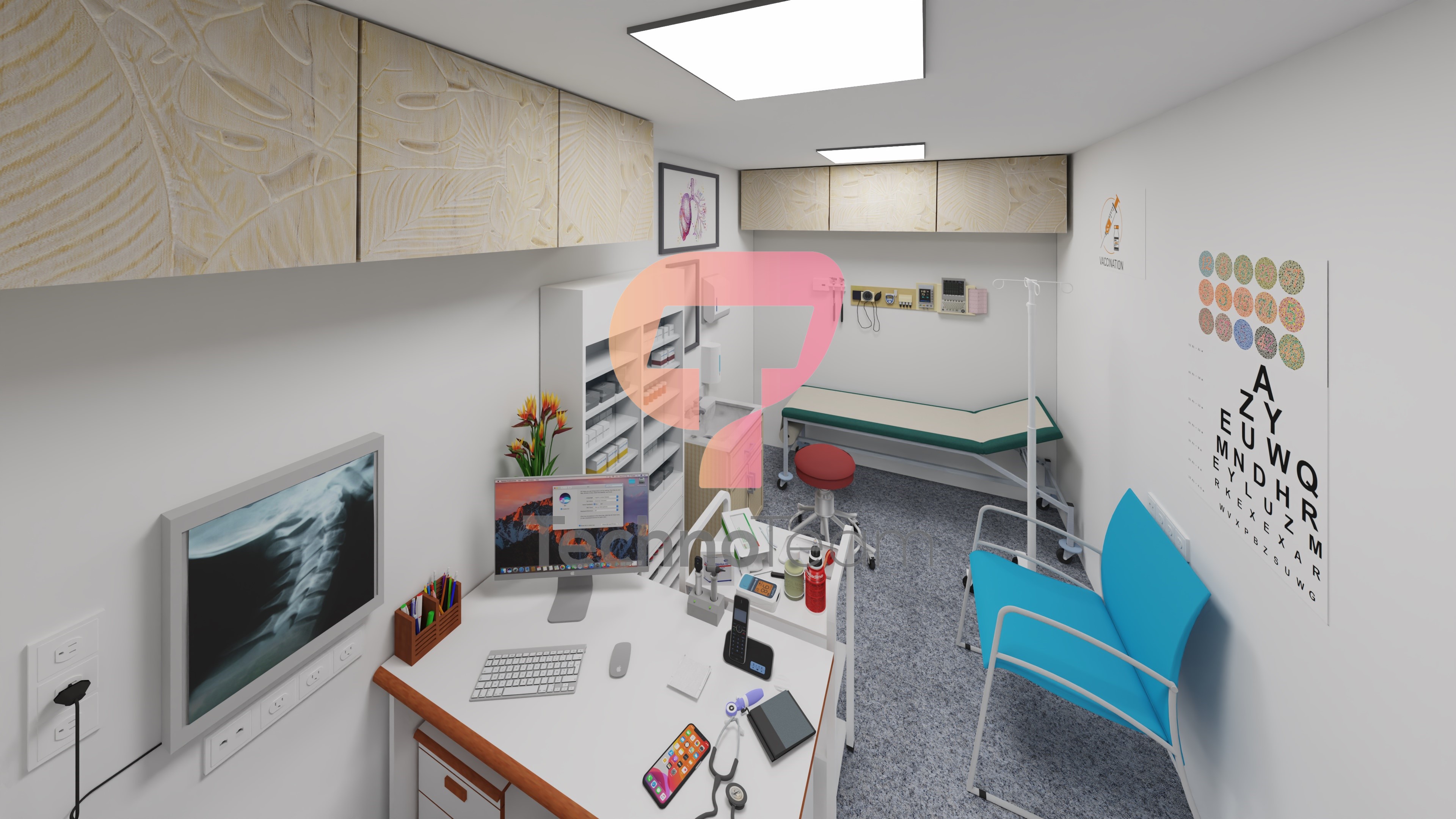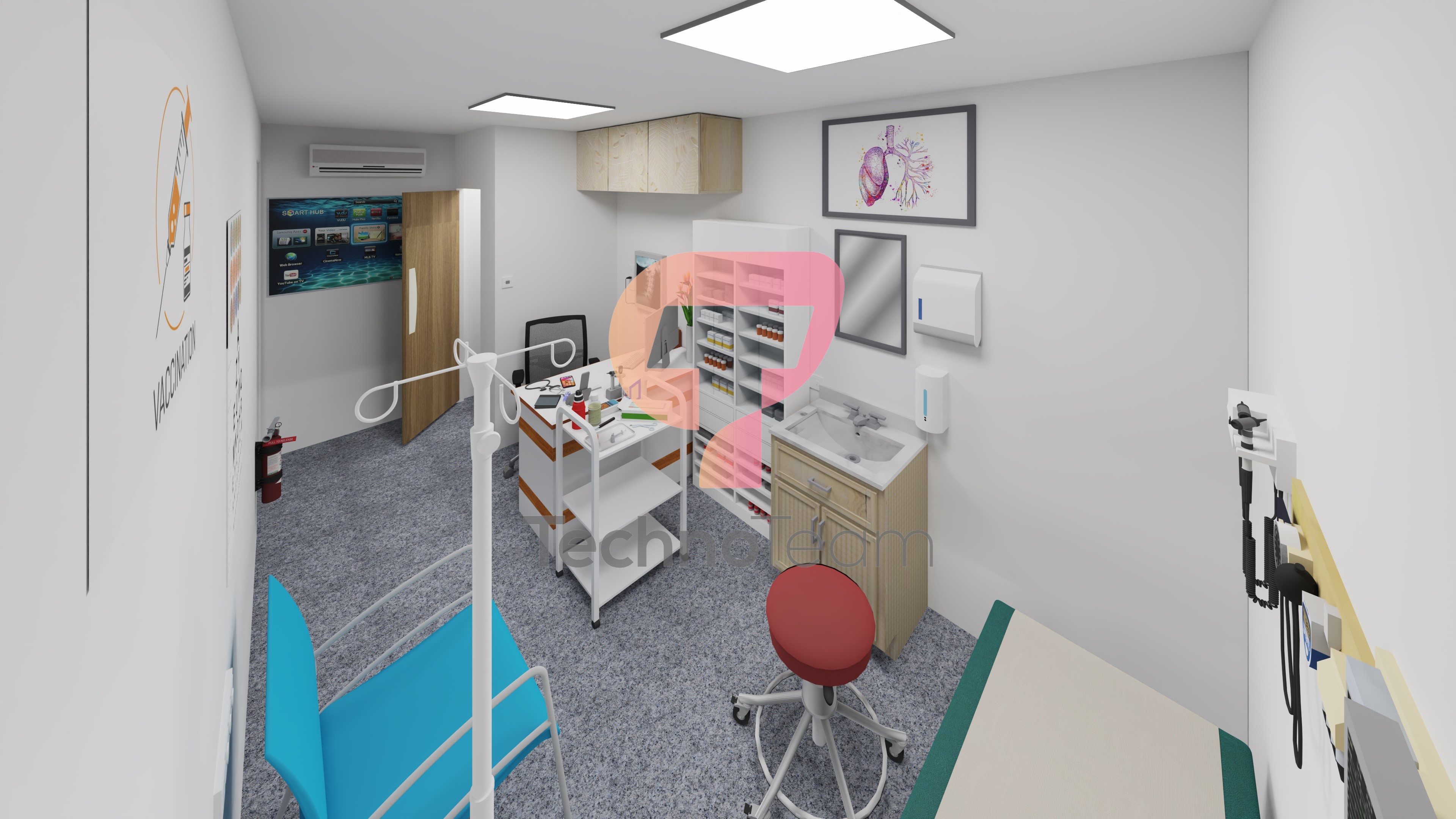 İç odalar ve yerleşim düzeni aynı alanlardan oluşabilir: Karşılama Ofisi, Bekleme Odası, Soyunma Kabini, Muayene Odası, X-Ray (Radyoloji) Odası, Ultrason Odası, Muayene - Tahlil Odası, engelli girişi…