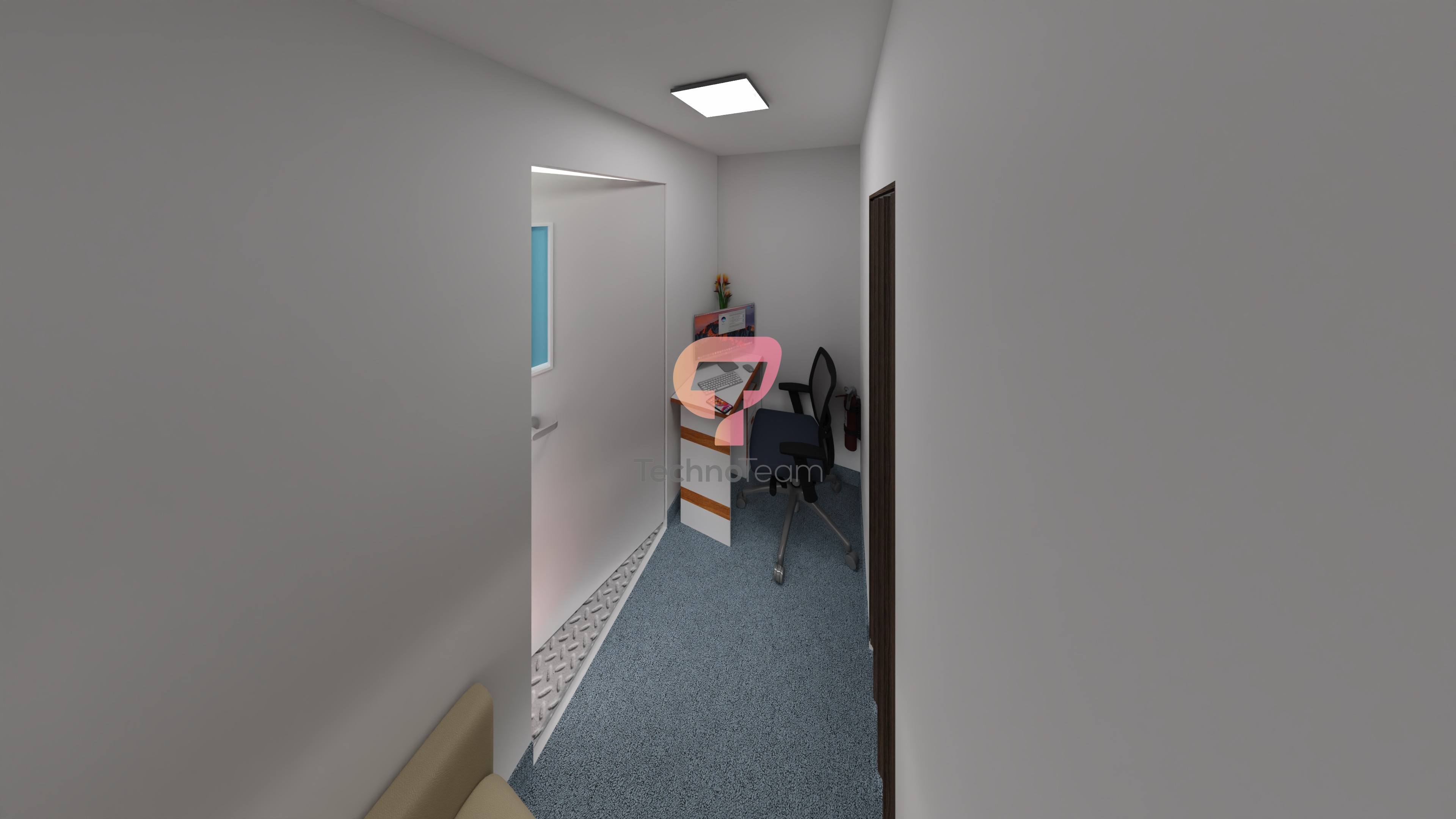 İç odalar ve yerleşim düzeni bu alanlardan oluşabilir: Karşılama Ofisi, Bekleme Odası, Genel Muayene - Tahlil Odası ve WC
