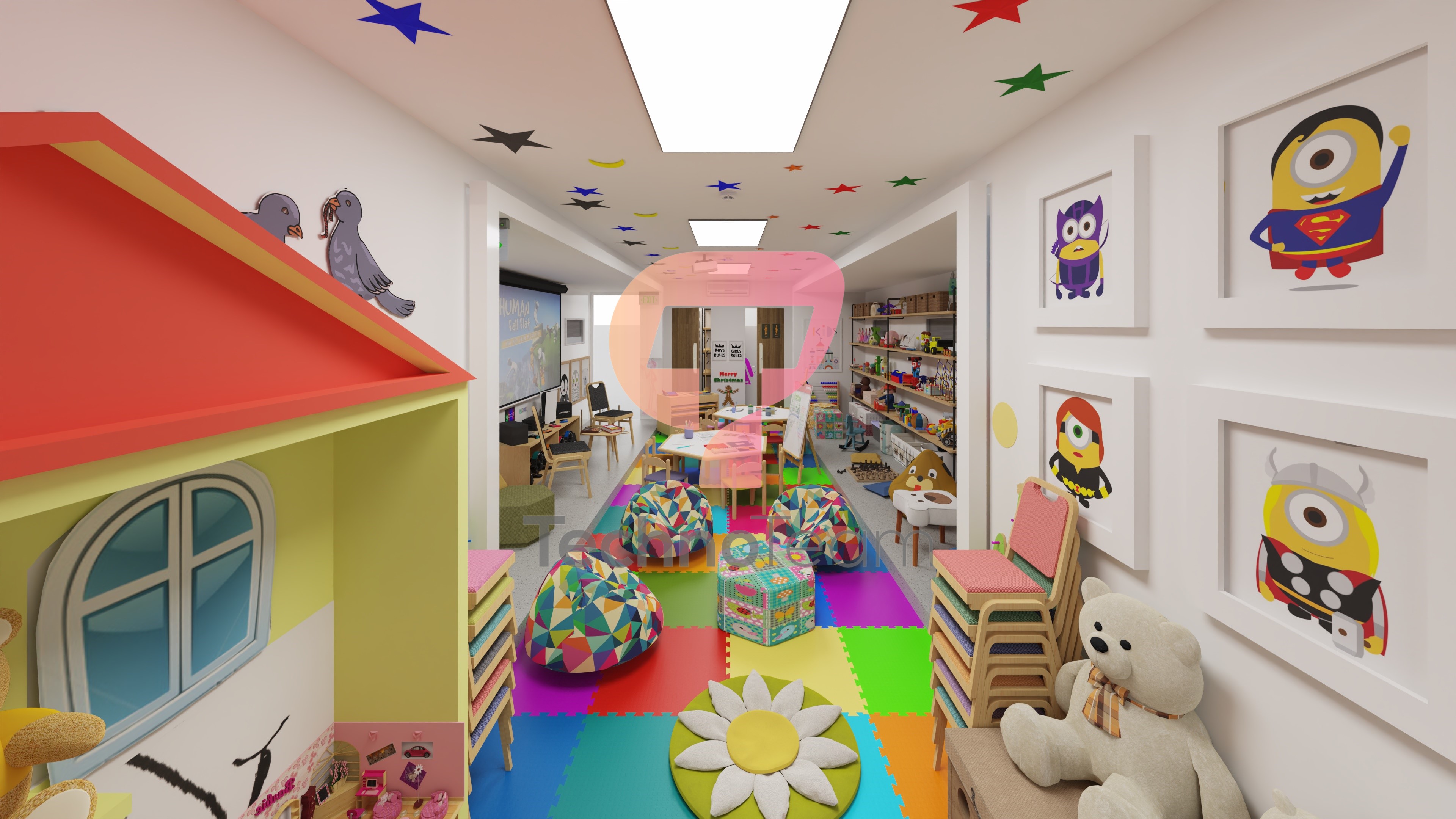 Techno Team mobil anaokulu / kreş tasarımıyla daha uzak köyleri ziyaret ederek, daha önce örgün eğitim olanaklarına erişemeyen çocuklara eğitim verebilmektedir