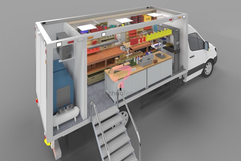 Techno Team design and manufacture ground based, truck based and trailer based mobile workshop containers.