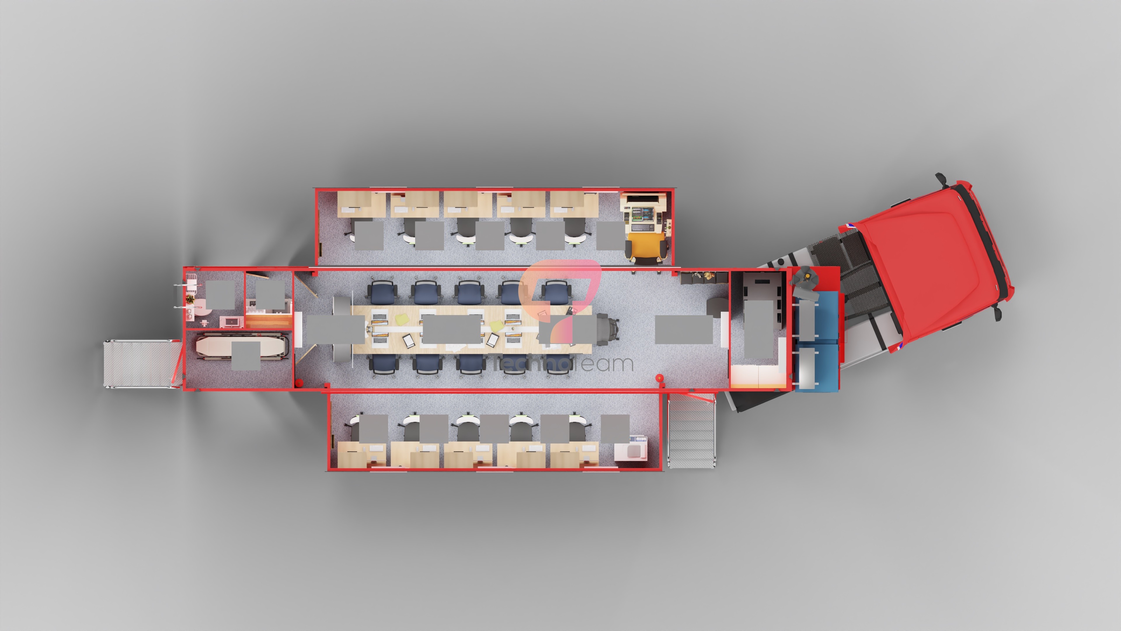 Techno Team ekibi; sabit, Kamyon Üstü (Araç Üstü) ve Treyler Üstü Mobil Komuta ve Koordinasyon Merkezleri tasarlar ve üretir.